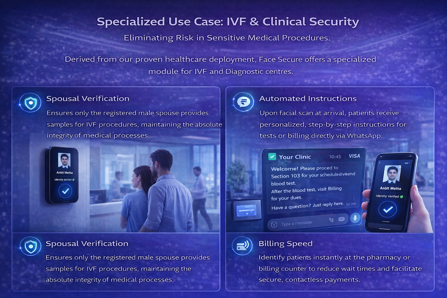 Derived from our proven healthcare deployment, Face Secure offers a specialized module for IVF and Diagnostic centres.